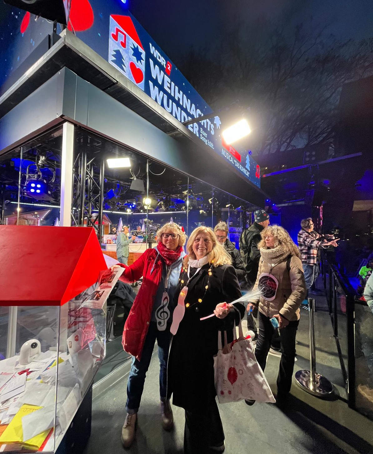 WDR 2 Weihnachtswunder WDR 2 Weihnachtswunder – Wir sind dabei – Unser Sparschwein wurde für den guten Zweck gut gefüllt! Monika und Virginia mit unserer Spende am WDR 2 Glashaus in Essen.